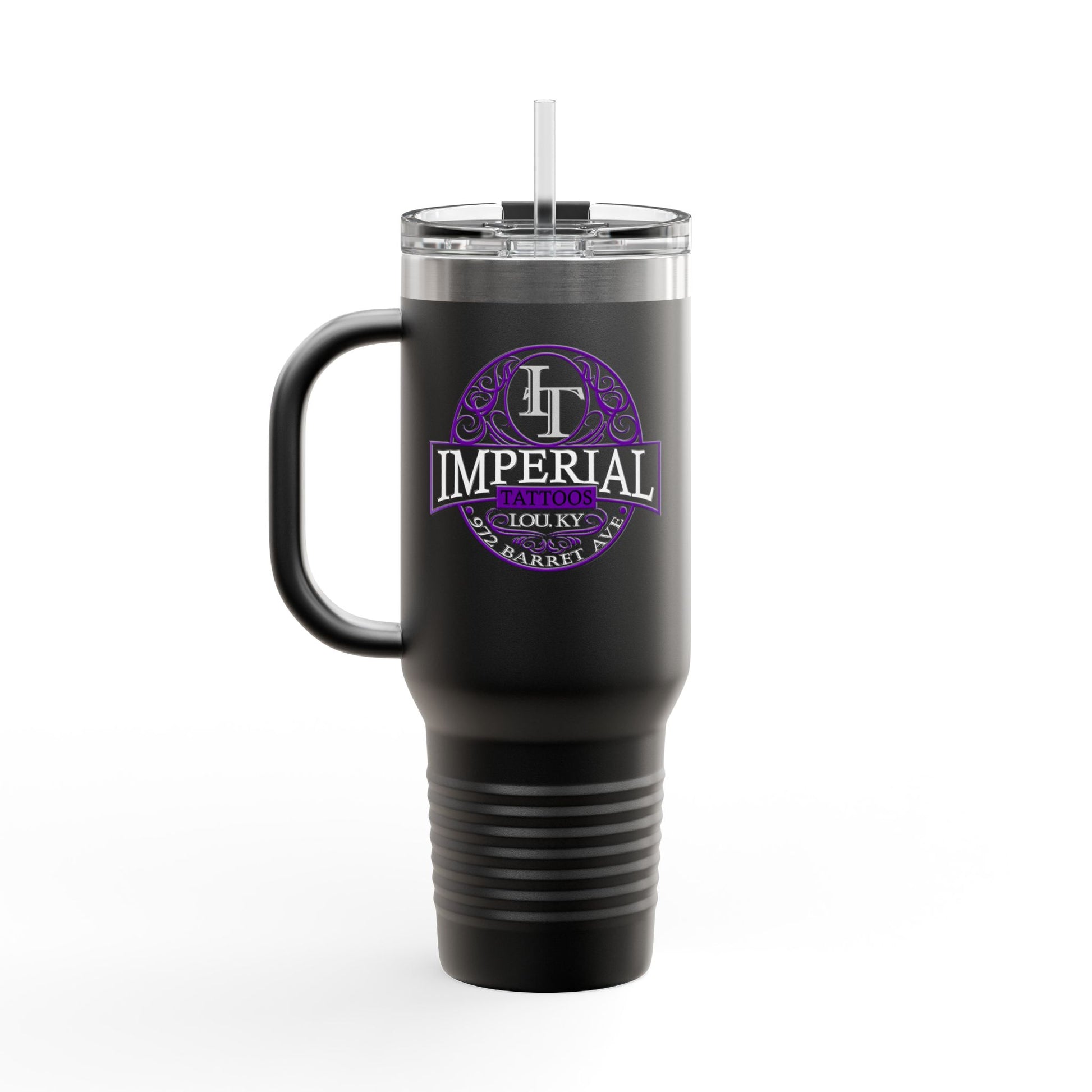 40oz Insulated Travel Mug with 'Imperial Tattoos' Smokers Purple Logo — Stainless Steel Tumbler with Straw & Handle