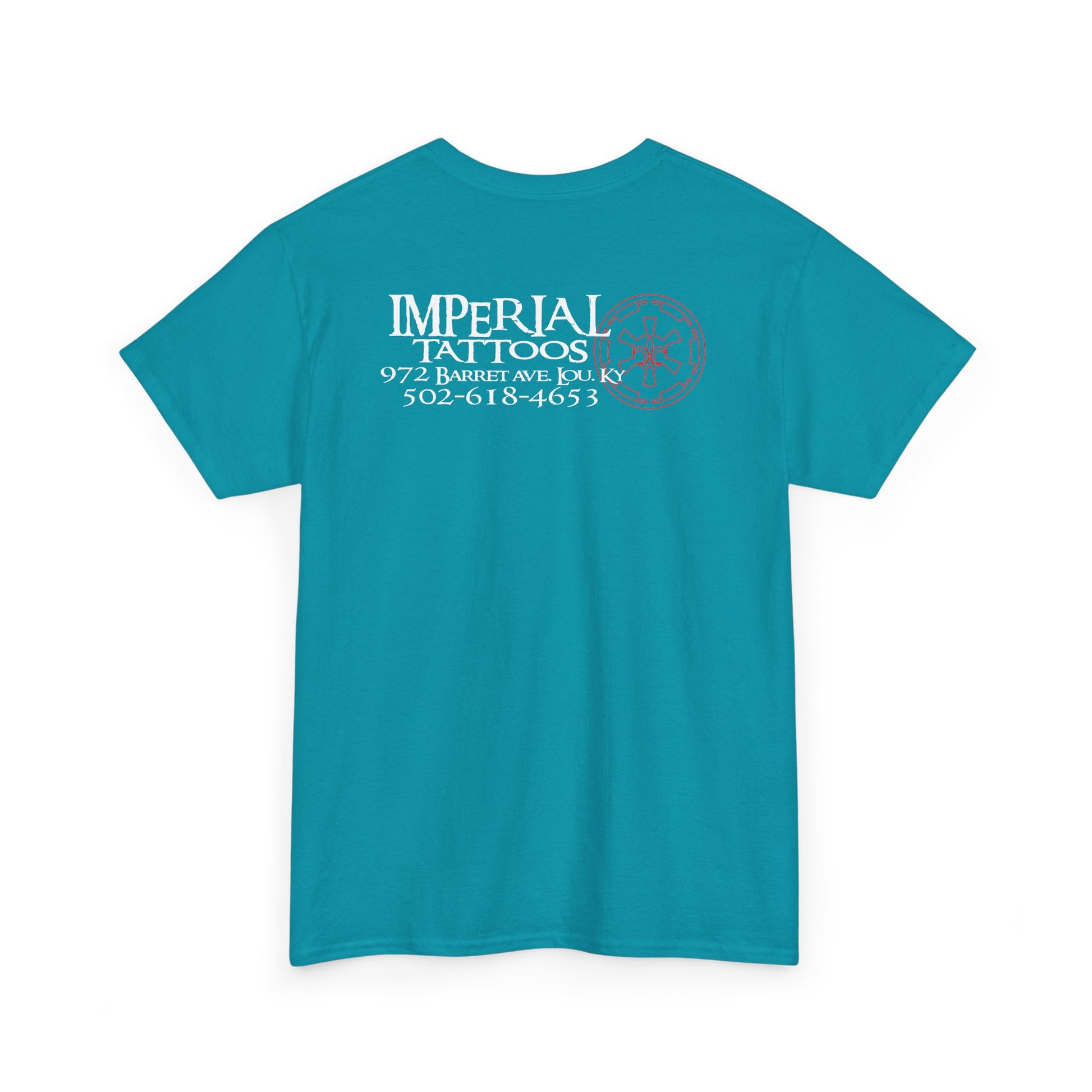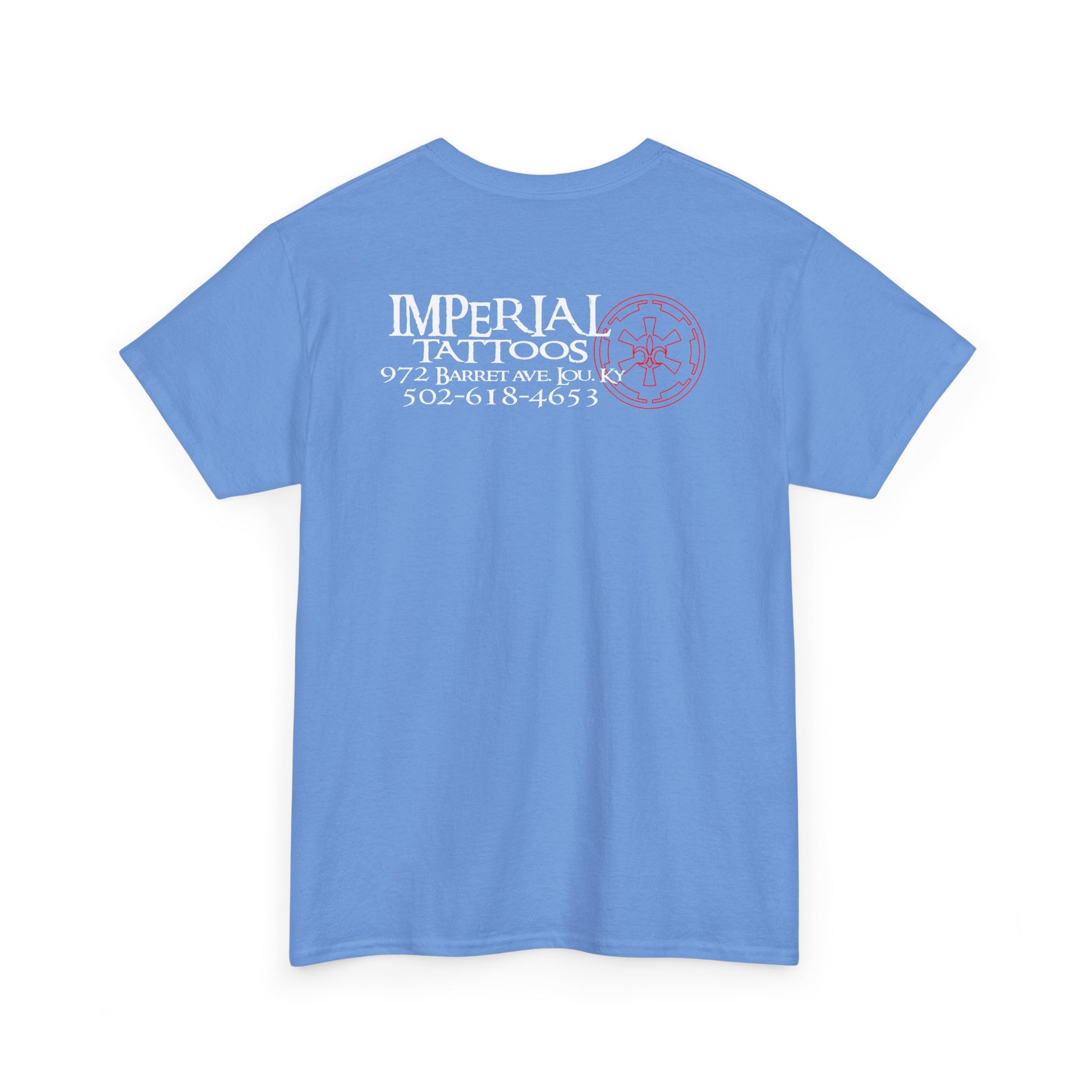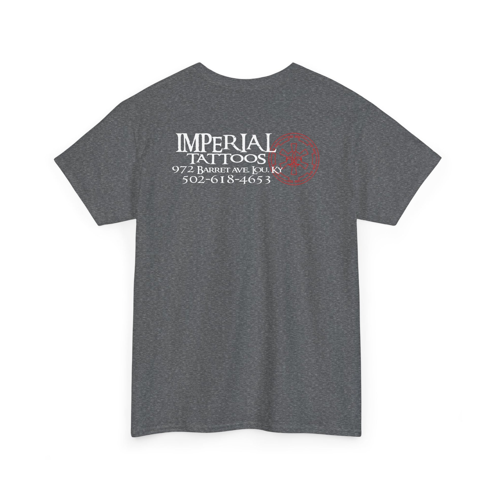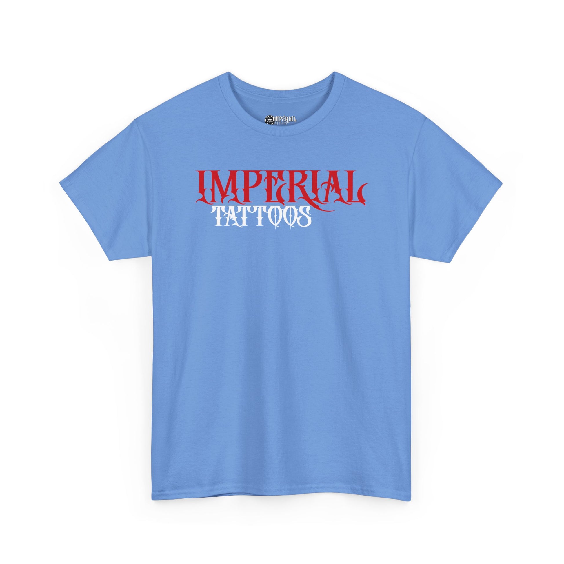 Gothic Red, White Font | Imperial Tattoos Unisex Heavy Cotton Tee, Cool Graphic Tee, Edgy Streetwear, Tattoo Lovers Shirt, Gift for Artists