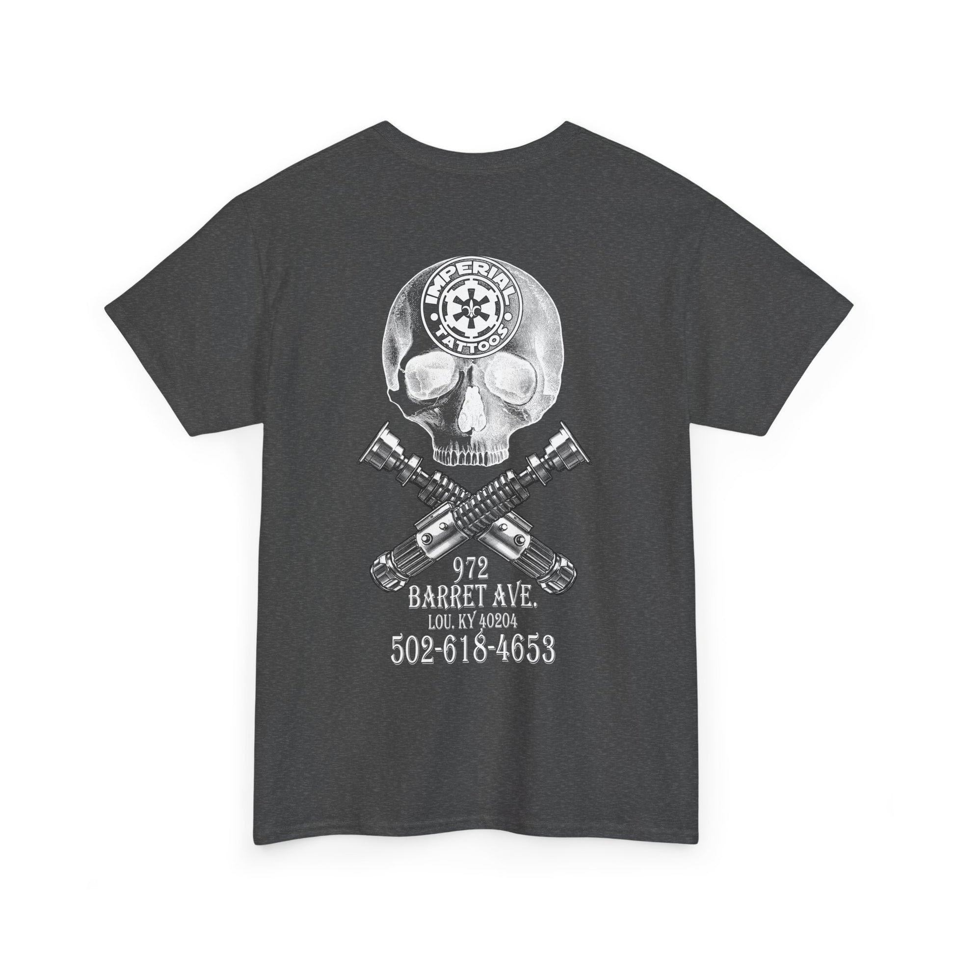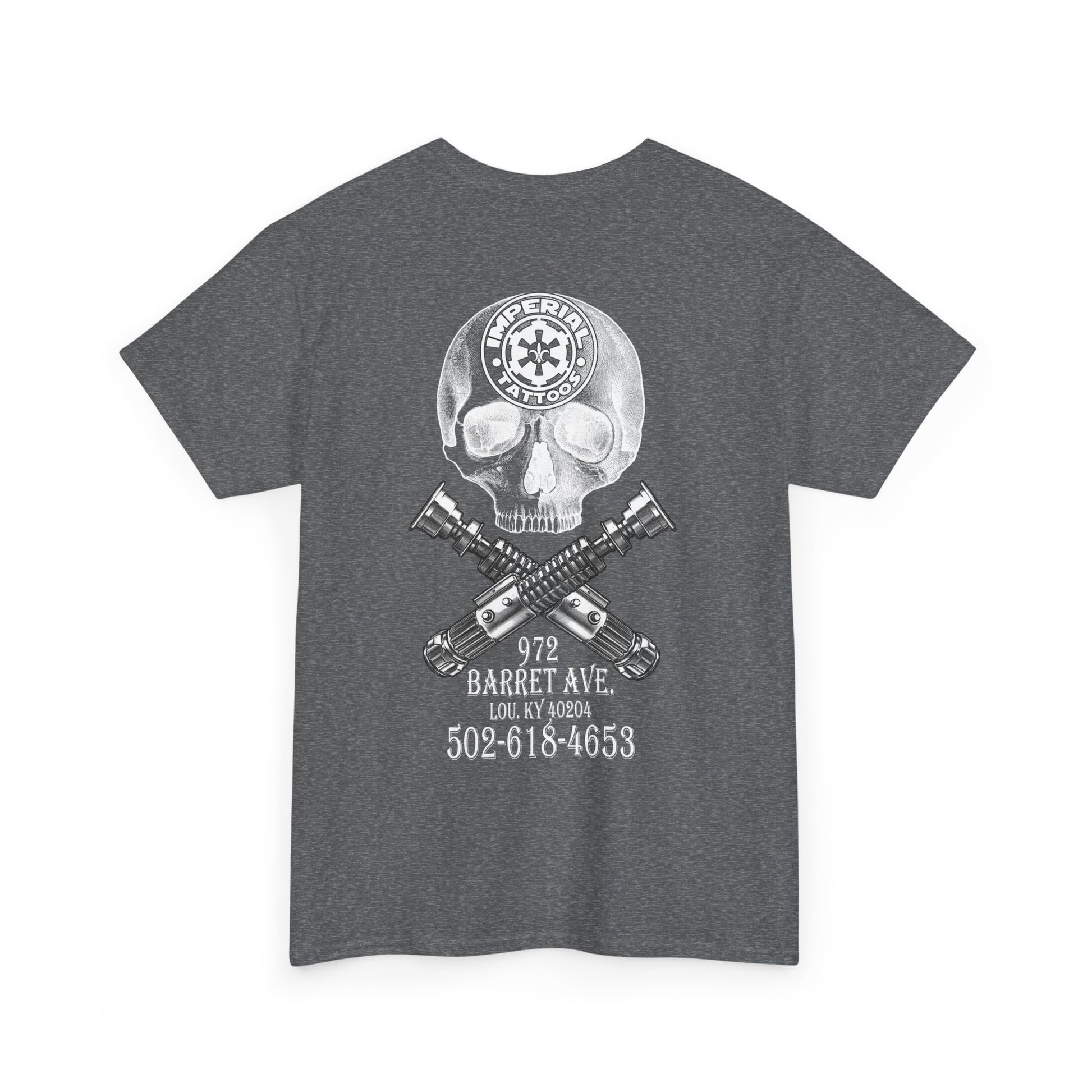 Skull Sabers | White and gray | Unisex Heavy Cotton Tee, Skull Graphic Tee, Edgy Casual Shirt, Comfortable Everyday Wear, Perfect for Streetwear, Trendy Gift