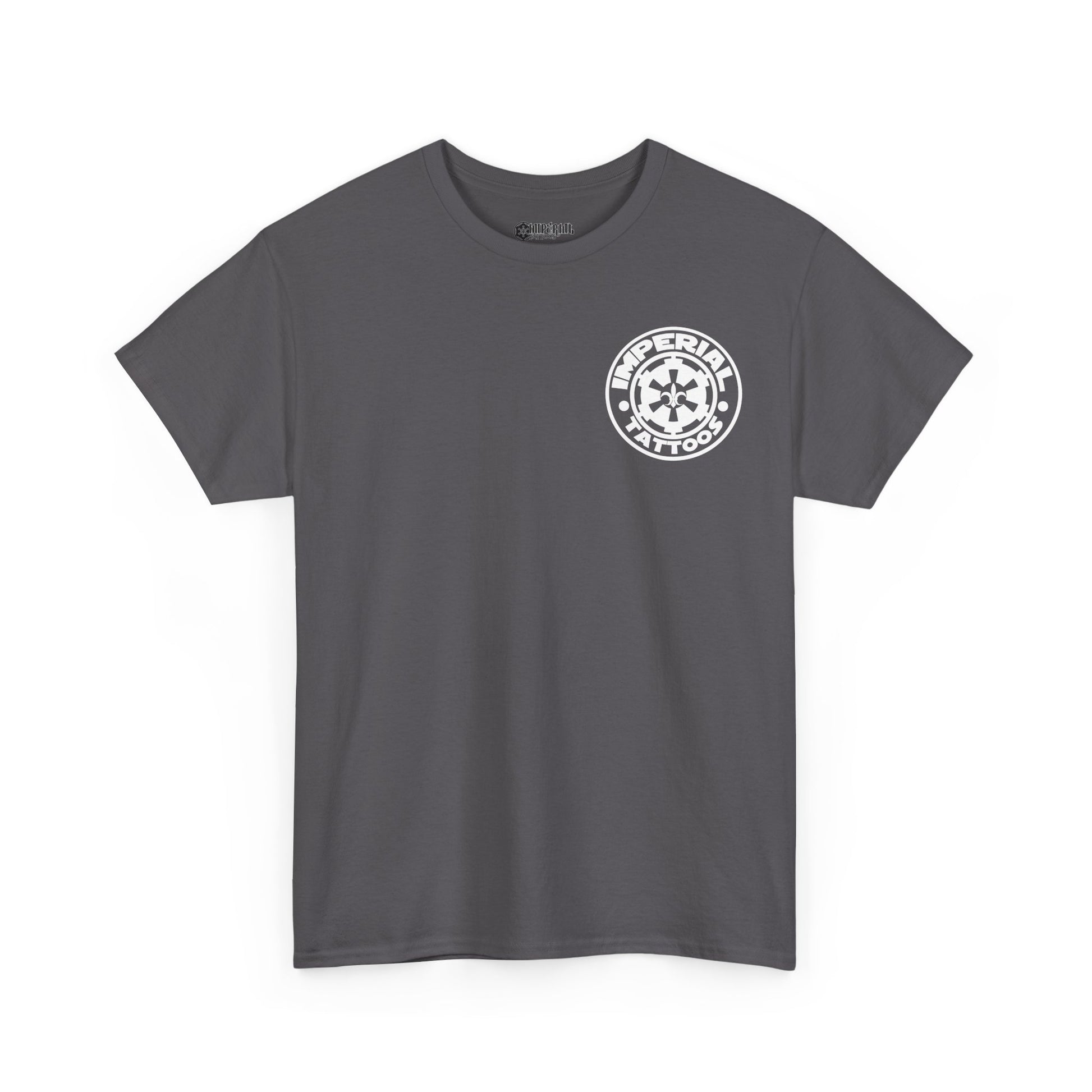 Unleash your inner rebel with the Imperial Tattoos Skull & Sabers T-Shirt. This edgy design perfectly blends the gritty with the iconic, making it an essential piece for fans of both top-notch tattoo art and galactic lore. The front of the shirt features a subtle yet powerful pocket logo of the Imperial Tattoos emblem, letting everyone know where your loyalty lies without saying a word.