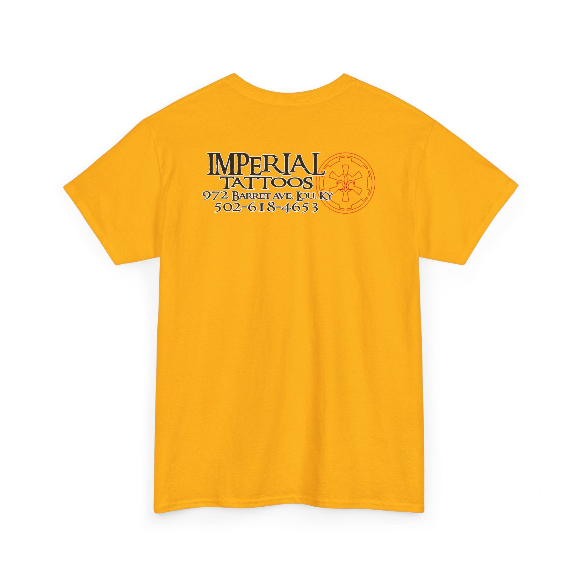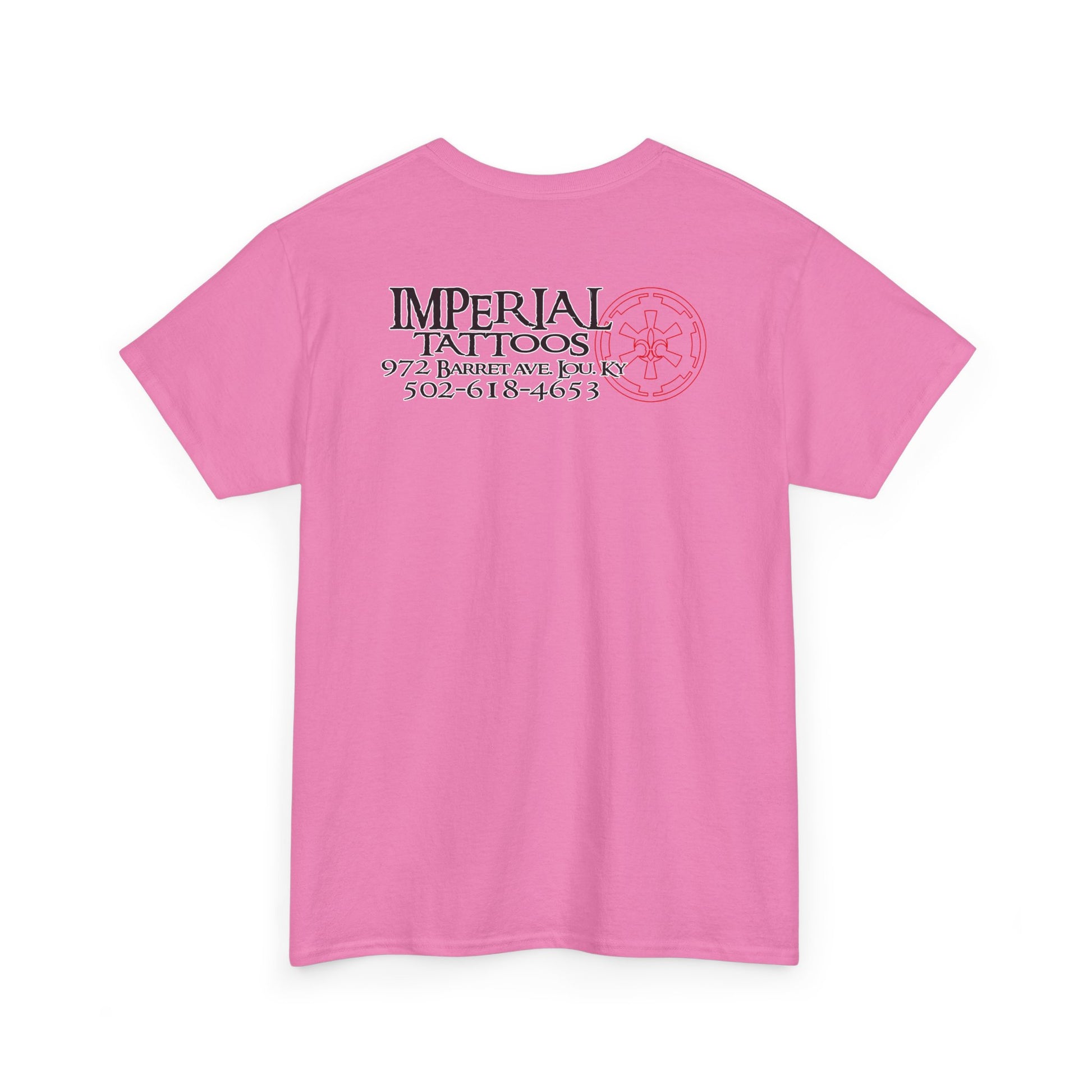 Keywords: Imperial Tattoos Gothic T-Shirt, Gothic Script Tee, Tattoo Art Apparel, Elegant Tattoo Design Shirt, Classic Tattoo Studio Shirt, Bold Tattoo Lettering, Gothic Fashion Tee, Tattoo Culture Clothing, Intricate Typography Shirt, Stylish Tattoo Shop Merchandise.